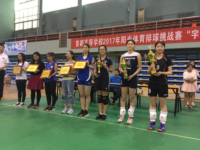 4月22日-23日, 首都高校2017年阳光体育排球挑战赛“宇生富”杯气排球比赛在北京交通大学大学举行,本次比赛由北京市大学生体育协会主办,北京市大学生体育协会排球分会承办,由深圳宇生富运动科技发展有限公司冠名赞助并提供比赛用球和奖励,同时得到北京市体育局排球运动管理中心的大力支持,来自北京大学、清华大学、中国人民大学、北京航空航天大学、ob真人竞猜等29所高校的44支代表队参加此次比赛,今年的参赛学校和参赛队伍创历史新高。我校排球队派出由体育部孟光云主任带队的男、女两队参加了此次比赛争夺,凭借平日的刻苦训练以及场上的良好发挥,最终荣获女子组第三名的好成绩。