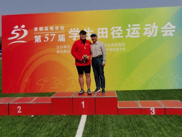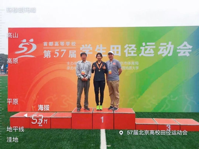 2016级的张妍同学近年首都高校比赛中获得一届冠军和一届亚军,是不折不扣的“挣分大户”,今年她在教练员李涛老师的带领下面对脚伤处置得当,在赛场上稳定发挥,凭借着自己过硬的实力在女子跳远和三级跳比赛中双双斩获银牌。 管院2014级程凯威获得男子跳高铜牌。
