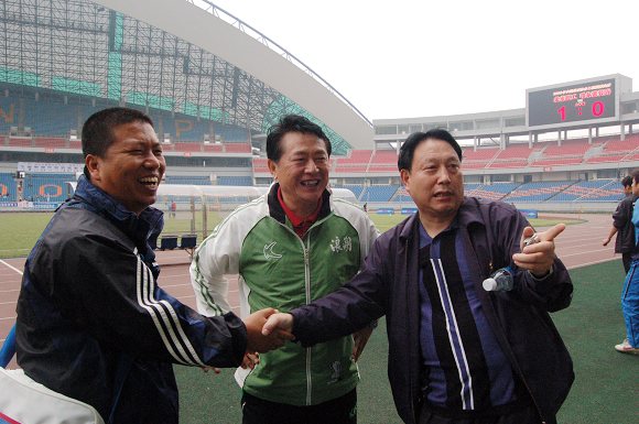 这时凌晨就开始坐飞机从北京风尘仆仆赶来观战的的我校常务副校长李志祥也刚刚走进赛场大门,他风趣地和金志扬总教练和王力教练开玩笑说:看来今天我来对了,我刚进赛场大门,皮球也进了对方大门,和我一起来了三个同志,看来今天估计要进三个球啊!
