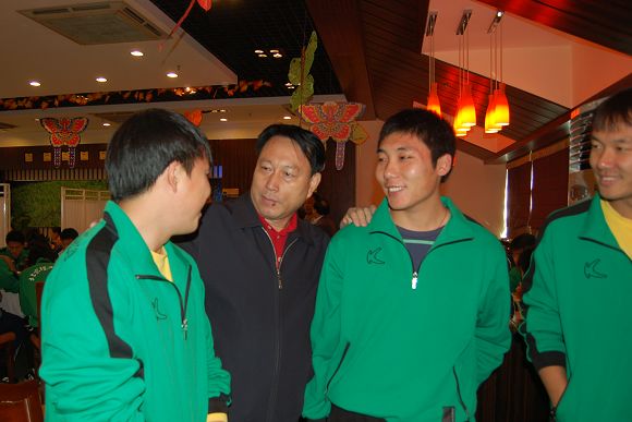 我校足球队总教练金志扬表示感谢学校领导和各级单位的关怀,此次决赛阶段的比赛一定全力以赴,争取为学校赢得新的荣誉。