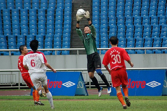 此时对方球员已经毫无斗志,几次稍有威胁的射门也都被我方守门员王毅轻松化解。
