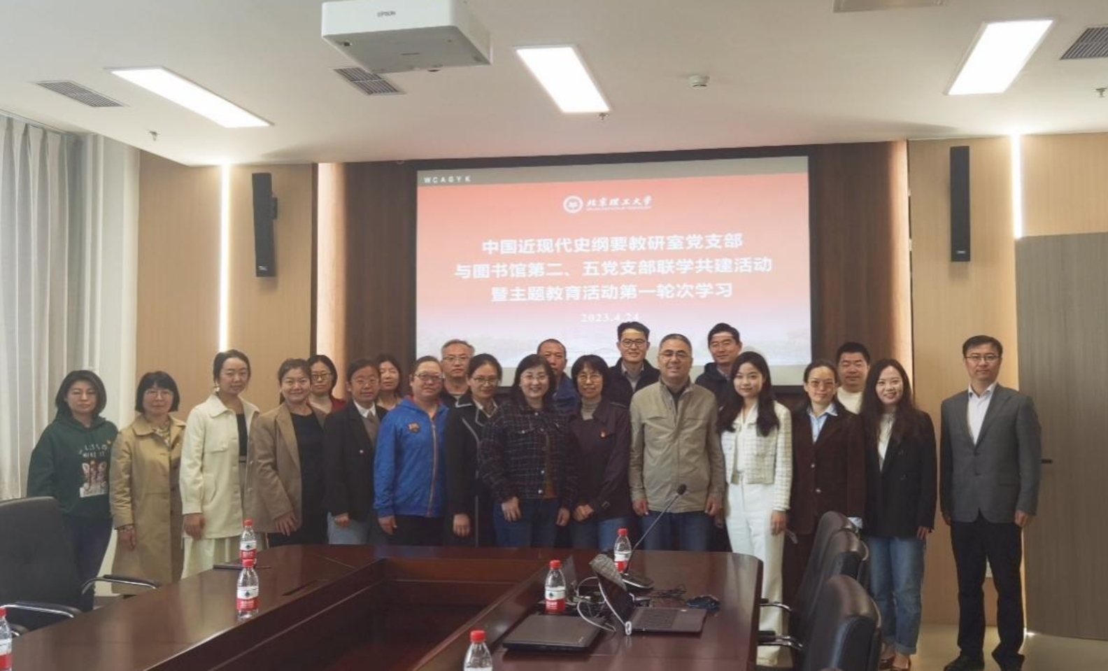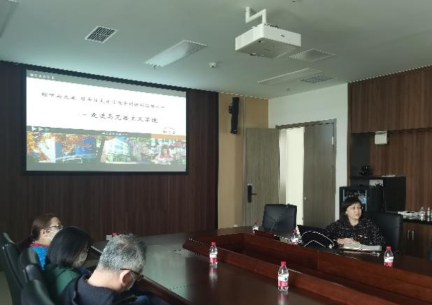 为深入开展学习贯彻习近平新时代中国特色社会主义思想主题教育,图书馆党总支按照“要把理论学习、调查研究、推动发展、检视整改贯通起来,有机融合、一体推进”的要求,以“倾听与交流”为主题,策划开展一系列走进学院的调研活动,坚持以实事求是的态度,深入到学院一线教师队伍中,实际沟通了解老师们在科研教学过程中的文献需求。4月24日上午,图书馆第二、第五党支部与马克思主义学院中国近现代史纲要教研室党支部联合开展联学共建活动。