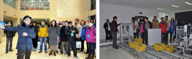 主题报告后,与会代表驱车来到ob真人良乡校区的“徐特立图书馆”进行参观。在图书馆馆长张永发馆长的带领下,代表们参观了自主研究发的全自动光盘库和全自动密集书库系统,张馆长的讲解使参会者感受到未来图书馆工作的理念和模式。