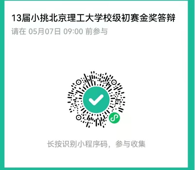 2、参赛信息报送。5月7日9时前,各入围答辩的项目通过扫描小程序报送联络人信息,请提前确认好项目编号、答辩场次、项目负责人(须与公示名单一致)及负责人手机号码、项目联络人及联络人手机号等信息。