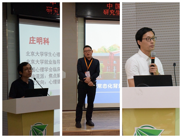 北京大学学生心理健康教育与咨询中心副主任庄明科、华中科技大学就业指导与服务中心主任敬鹏飞、林骥佳分别做了《心理咨询视角下的生涯课程设计与思考》、《疫情常态化背景下研究型大学促进学生高质量就业路径探讨》和《以工作室建设为牵引,开启职涯发展教育2.0新篇章》的主题分享报告。