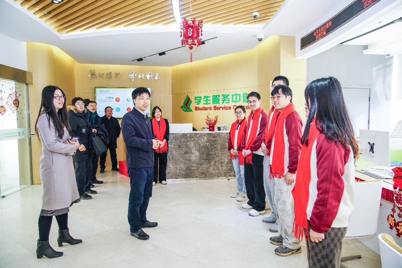 在中关村校区,张军一行先后走访师生服务大厅、监控中心、配电室、教工食堂、硕博学生公寓、北门门岗等地开展慰问。详细了解了冬季学期(寒假)期间学校各项工作运行情况,每到一处,张军都与在岗职工深入交流,悉心询问春节期间的工作安排和保障措施,对大家始终坚守服务一线、为校园平稳运行保驾护航的付出表示感谢,希望大家保重身体,持续提升服务质量,用心用情做好校园各项保障工作,为全校师生度过欢乐祥和的春节筑牢服务根基。在硕博学生公寓,张军与留校学生代表亲切交流,关心同学们的科研进展和假期生活,勉励同学们珍惜假期时光,合理规划学习与生活,保持积极向上的学习生活态度,在科研道路上脚踏实地、勇攀高峰,不负韶华、逐梦前行,学校将全力保障留校师生学习、工作、科研各项需求。
