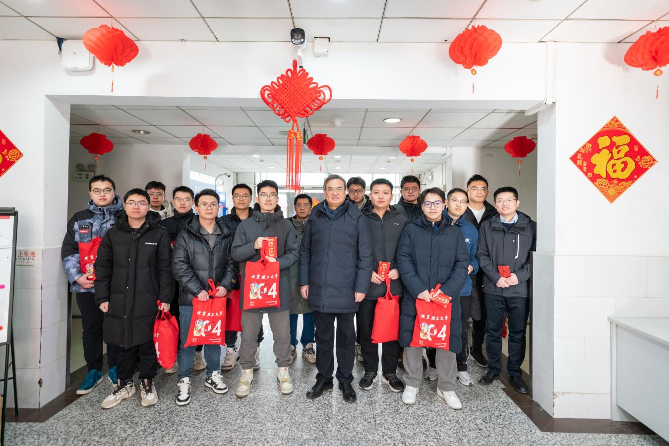 金龙献瑞,恭贺新春,甲辰龙年新春佳节来临之际,校党委书记张军、校长龙腾分别率队到学校中关村校区和良乡校区,看望慰问春节期间在岗教职工和留校学生,代表学校向他们送上节日问候和新春祝福。