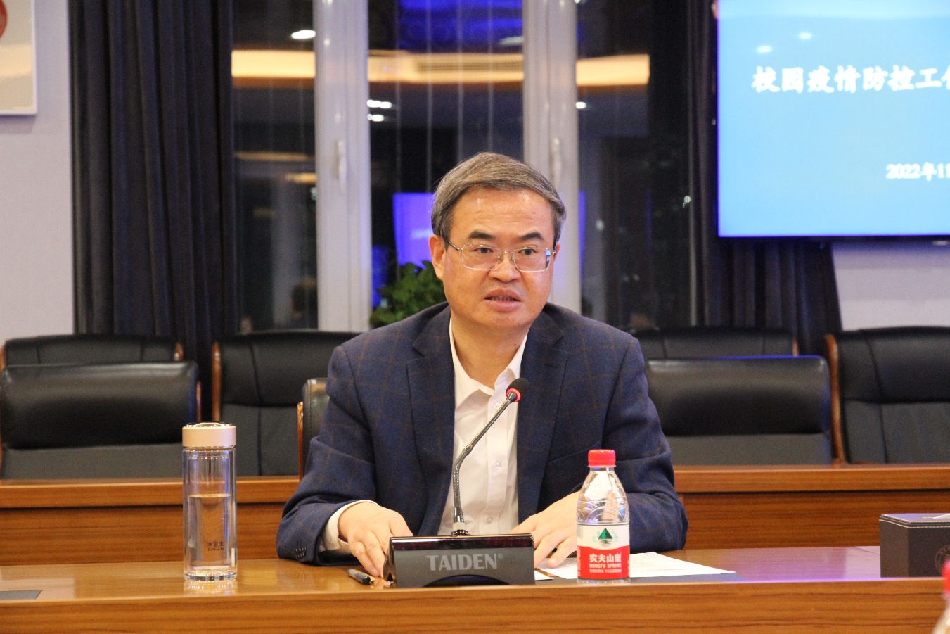 张军强调,一是要提高站位,高度重视疫情防控工作。近期北京市疫情处于高位,学校周边及个别高校出现疫情,病毒就在周边、危险就在眼前,各单位要严格落实主体责任,守土有责、守土尽责,坚决守护好校园安全,坚决杜绝侥幸心理和麻痹思想。二是从严从紧,全面落实各项常态化防控举措。要继续严把校门关,严格执行各项查验;加强各类人员进出校管理,严格校外人员进校审批;按要求做好师生员工“三天一检”和“保食洁”等重点人群“一天一检”的常态化核酸检测工作,同时提升核酸检测能力水平;做好线上教学各项保障工作,着力做到线上线下灵活切换;加强快递物流等的入校消杀和日常消杀;进一步依托网格化管理全面落实各项常态化疫情防控举措。三是关心关爱,持续做好宣传引导工作。深入做好广大师生员工及家属区离退休人员的思想工作和服务保障工作,凝心聚力,举全校之力共同守好校园防线;充分用好学校接诉即办平台,聆听师生关切,及时回应合理诉求,做到“接诉即办”“未诉先办”。他指出,当前全校上下正在掀起学习贯彻落实党的二十大精神热潮,要坚持把人民至上、师生至上作为做好校园疫情防控工作的根本宗旨,坚持系统观念,科学统筹、守正创新,继续将疫情防控责任压紧压实,将各项防控措施落实落细,继续统筹好疫情防控和学校各项事业发展,以实际行动落实党中央“疫情要防住、经济要稳住、发展要安全”的要求,切实保障校园安全稳定,稳步推进“双一流”大学建设。