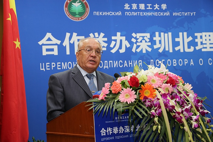 杨学山代表工业和信息化部对合作协议的顺利签署表示祝贺。他说,莫斯科国立大学是俄罗斯规模最大、历史最悠久的综合性高等学府,ob真人竞猜是新中国成立以来历批次重点建设的高校之一,两所大学在中国改革开放的窗口、经济特区深圳市共同建立一所高水平精英大学具有重要的战略意义,符合两国深化战略协作伙伴关系的需求、符合区域经济发展需求、符合教育国际化的需求。他表示工业与信息化部作为ob真人竞猜的主管部门,将一如既往地支持ob真人竞猜申办、建设深圳ob真人莫斯科大学,希望能通过ob真人竞猜和莫斯科国立大学与深圳市人民政府的通力合作,早日将深圳ob真人莫斯科大学建成具有世界先进水平的高等学府。