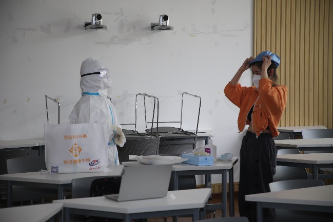 在属地安排及支持下,坚持“应检尽检、不漏一人”,组织在校人员按要求开展核酸检测。封控区进行上门检测;管控区按楼宇、楼层、宿舍进行分批检测;防范区坚持“就近检测、减少交叉”,精细划分核酸检测场地。为避免二次交叉感染,相关部门在疾控部门指导下及时规划检测路线,路线设置为单向通行。