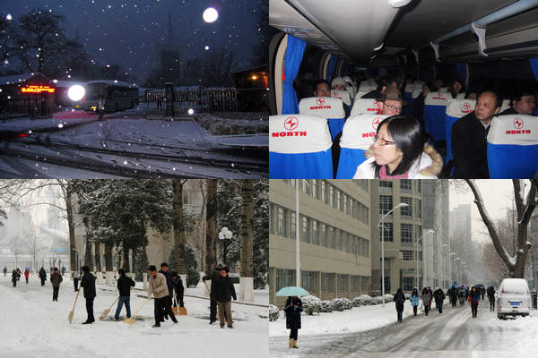 今天是新学期开始的第一天,一个新的春天开始,又恰逢国际劳动妇女节100周年,一早京城就飘起了纷纷扬扬的雪花,大地银装素裹。今天中关村校区、良乡校区是新学期上课的第一天,在交通不利的情况下,从各个地点开往良乡校区的班车天不亮就发车,后勤集团和良乡校区管理处也发动工人清扫校园。