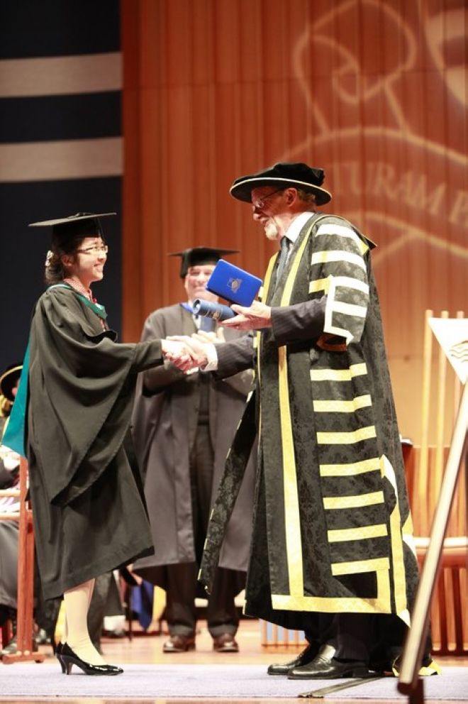 7月13日,在澳大利亚国立大学举行的毕业典礼上,校长亲自为胡野青同学颁发了荣誉学士学位和奖章,郭婧同学将参加今年年底的毕业典礼。
