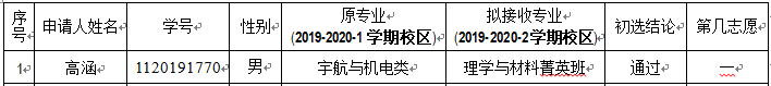 根据《ob真人求是书院2019-2020学年第二学期本科生转专业实施细则》,经本人申请、资格审查、面试考核,现将求是书院2019-2020学年第二学期接收转专业学生初选结果公示如下: