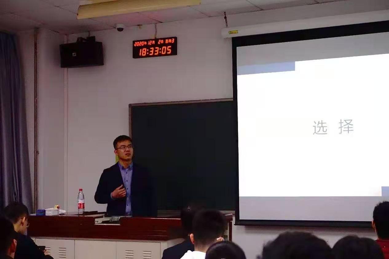 金天:从专业到职业到人生轨迹,这一路我们必然要面对纷繁的选择,不尽的诱惑。从周三学长的分享中,我感受颇深。理智思考,自律勤奋,明确目标,充足准备是抓住机会正确选择的关键。通过学长的分享我也了解到自己专业的发展前景以及目前中国发展科技短板,因此要努力学习专业知识为科技发展做贡献。