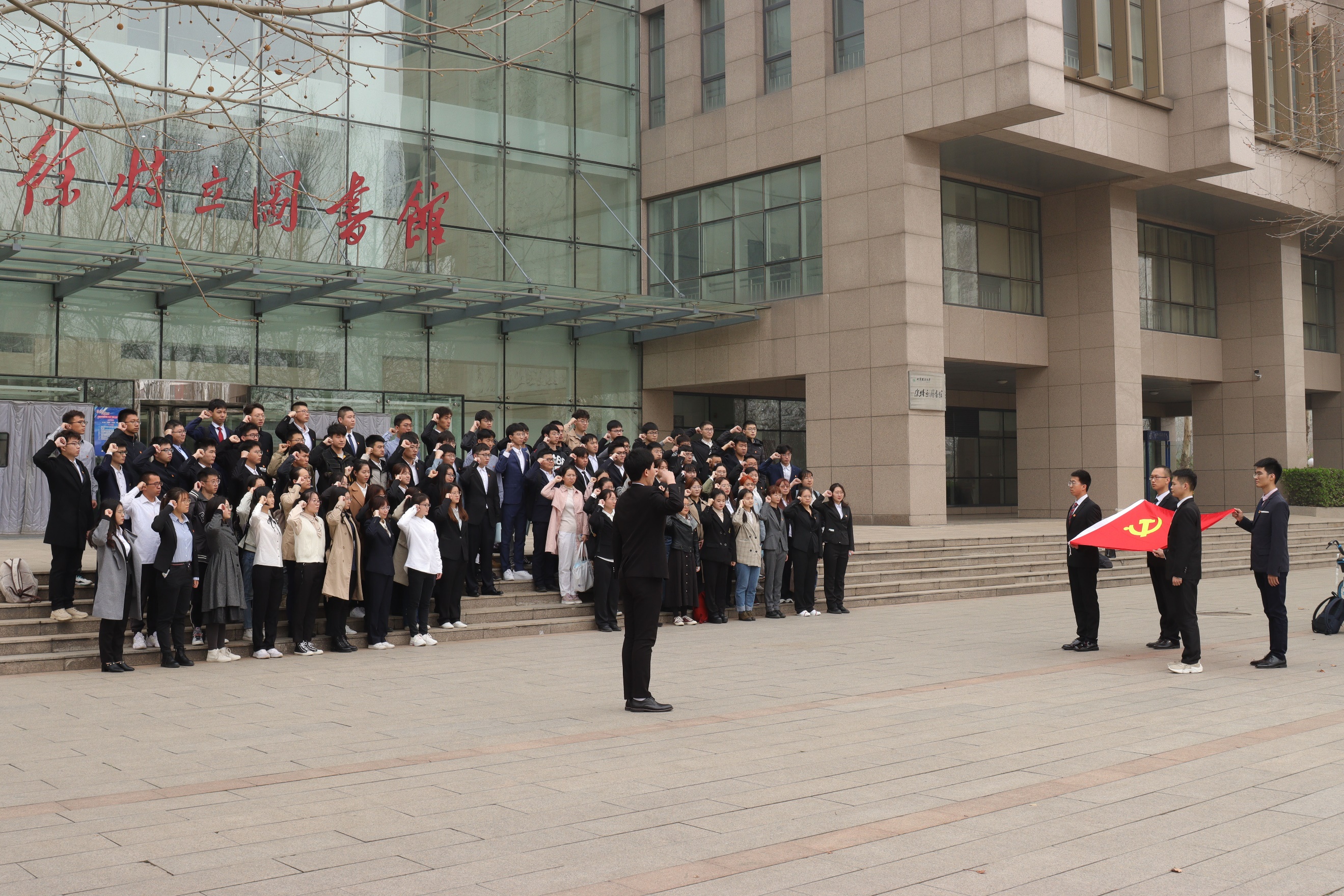 “我志愿加入中国共产党,拥护党的纲领,遵守党的章程,履行党员义务,执行党的决定,严守党的纪律,保守党的秘密,对党忠诚,积极工作,为共产主义奋斗终身,随时准备为党和人民牺牲一切,永不叛党!”3月27日中午,在徐特立图书馆门前,再次响起嘹亮铿锵的入党誓词。108名师生党员在徐特立图书馆门前庄严宣誓。