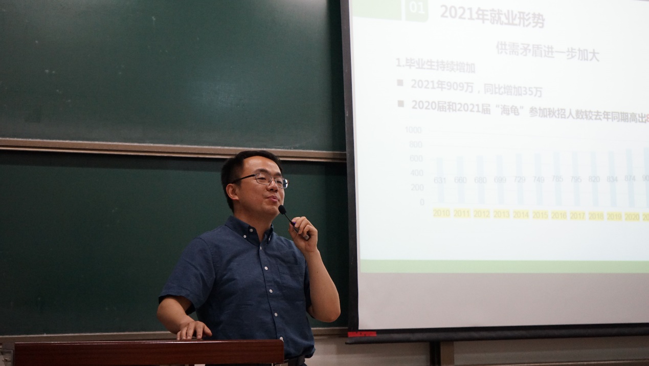 讲座于2021年5月19日18:30举行,张龙泽老师以“就业形势与政策专题展开”,为同学们分析当下的就业形式,讲解就业政策,希望同学们早日了解一些政策,获得就业信息,在将来迈出就业这一步时能更好地做出选择。