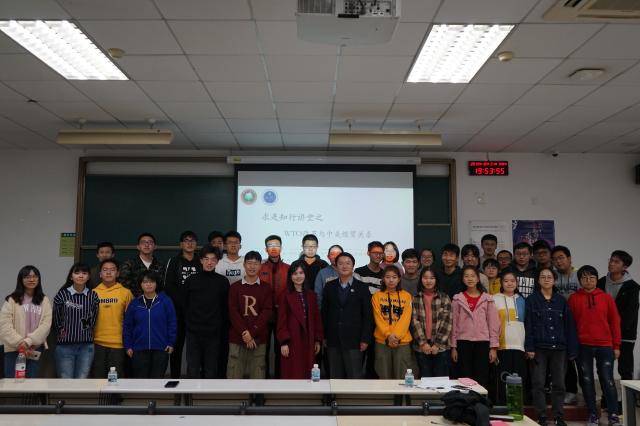 李教授将“WTO改革与中美经贸关系”通过三个部分重点宣讲,分别为“WTO的产生与发展”、“当前面临的危机”以及“中美经贸关系”。首先,李教授向同学们全面介绍了WTO多边贸易体制的发展过程,着重讲述了中国加入WTO的曲折历程,详细介绍了WTO的主要职能。其次,李教授深入分析了当前WTO多边贸易体制面临的危机,并分析了其中的两个主要原因——一是由WTO深层次的制度性问题以及各成员国利益分化导致的谈判效率低下,二是由美国角色和定位发生根本性变化导致的争端解决机制面临困境。最后,李教授以当前WTO改革进程中的中美经贸关系为出发点,向同学们阐释了面对中美贸易摩擦我国立场、应对策略,充分体现大气度和大担当,并深入分析了摩擦对WTO多边贸易体制和经济全球化的影响。