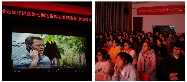 在讲座最后,柴红芳导演动情说道:“11个人的团队最少时只有两个人,给七百人的村庄带来终身道路的通畅,作为一个文化人,纪录片人代表个人、家庭、社会、政党改变了七百人的命运,我们的团队无上光荣。我内心希望,梦想中国故事,世界看见,想用个人毕生的力量,全心全力,认认真真,非常纯粹的拍摄真实影片。我也希望拍摄你们这个时代现实题材的真实故事,来看待时代的变迁,这不容易,很平凡但也很伟大”。