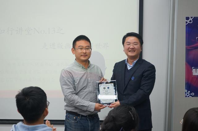 最后,求是书院副院长周芳集老师向黄可一教授颁发了求是书院校外导师聘书。同时,周老师也鼓励求是书生走进艺术展览馆,去了解美术史,从而扩展我们的思维。本次知行讲堂是求是Files ABC培养计划中美育提升计划的一次实践,美育提升计划不仅注重提升求是书生在音乐、美术等方面的美育素养,更注重培养求是书生在生活中提升品味,将对美的追求贯穿到未来长期的生活中去。