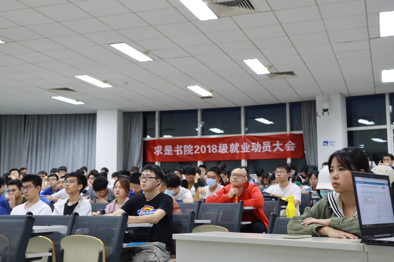 为了让毕业生及时了解当前社会就业形势,进一步提高就业意识和积极性,求是书院于2021年9月23日晚在理科教学楼204举行2018级学生就业动员大会。ob真人就业指导中心副主任张龙泽、求是书院相关老师以及求是书院2018良乡校区全体学生参加本次大会。