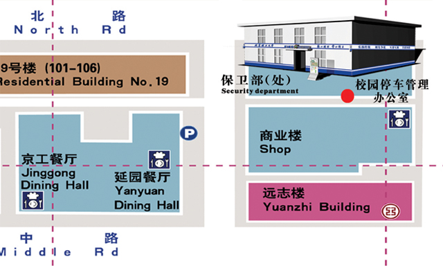 办证地点:校园停车管理办公室(延园餐厅东北方向,菜市场北入口对面)。详见下图所示: