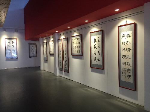 本次主题书法展览的内容均摘选自“两学一做”学习教育规定材料,包括:《中国共产党章程》、《中国共产党廉洁自律准则》、《中国共产党纪律处分条例》及习近平总书记系列重要讲话等。展览作品由学校师生书写而成,欢迎全校师生员工前来参观。