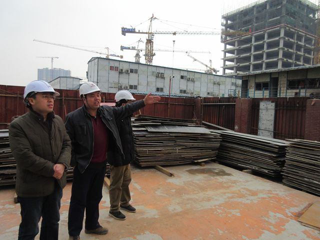 安全生产检查小组先前往各项目施工现场,主要查看易燃易爆用品存放及消防设施完好状态、项目停工以后危险点防护情况。检查小组着重检查了大学生工程实践训练中心项目与北京时代广场项目失火交界处围墙完好情况。
