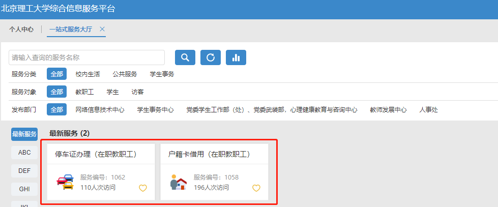 为深入贯彻落实国家关于深化简政放权改革精神和学校2018年年中工作会议精神,坚持“以师生为中心”的服务理念,大力借助信息化手段推动管理服务流程再造,切实提升教职工服务质量和效率,教师发展中心协同保卫部、信息化办公室、网络信息技术中心等部门重新整合优化了教职工“户籍卡借用”和“停车证办理”业务流程,并已通过ob真人综合服务平台“一站式服务大厅”实现网上办理。具体办理方式如下: