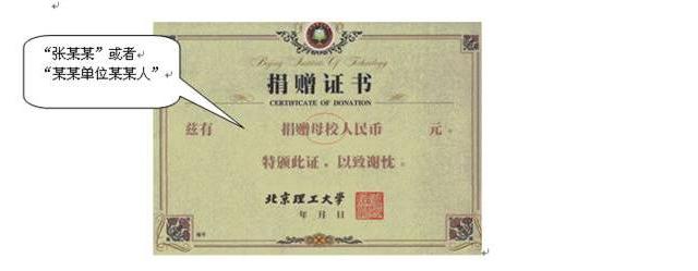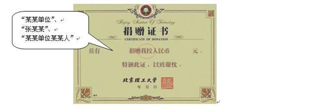 2、 落实捐赠证书的类型和相关内容: