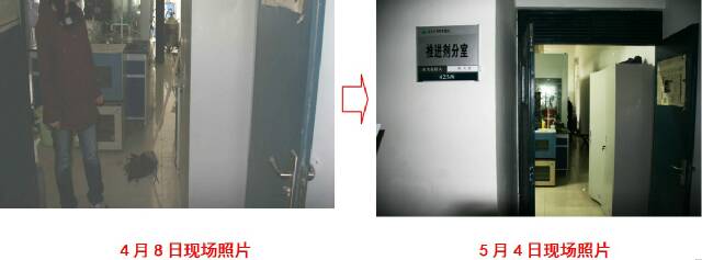 根据《通报》中的整改期限,2011年5月4日,我处环保技安科范强锐和曲运波两位同志对上述发现问题实验室的整改落实情况进行了核查,现将情况通报如下: