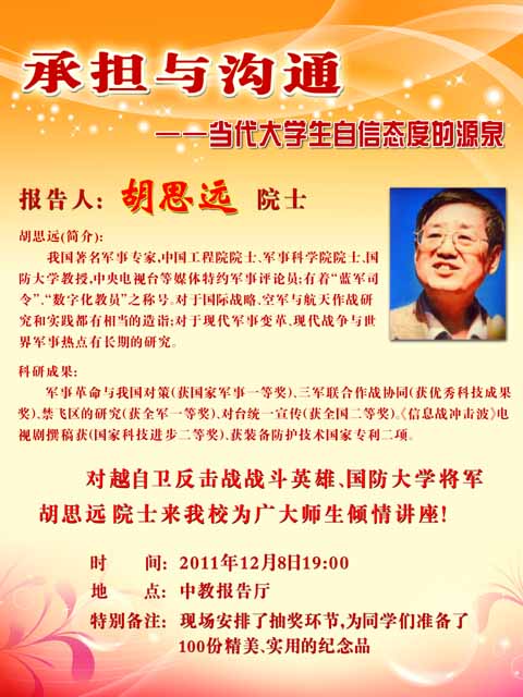 报告题目:承担与沟通——当代大学生自信态度的源泉