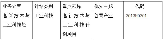1.2013年创意产业科技计划重点项目申报代码表: