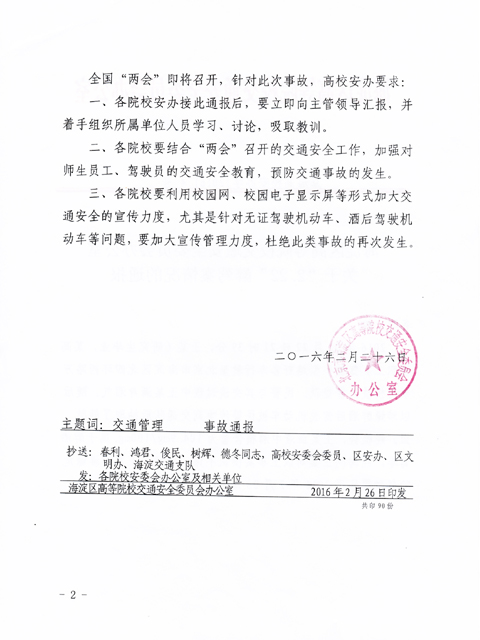 > 转发《海淀区高等院校交通安全委员会办公室关于“2.22”醉驾案情况的通报》