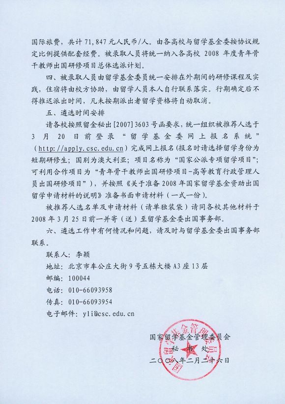 附件一:关于遴选“高等教育行政管理人员出国研修项目”留学候选人的函