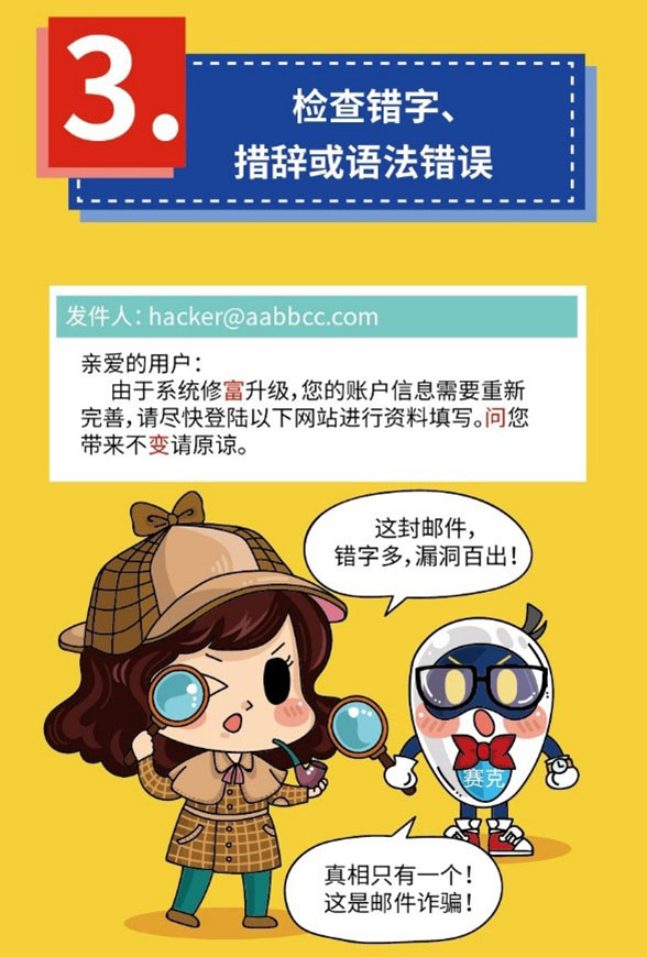在这里给老师和同学们介绍几招防范邮件欺诈的方法,祝大家过一个平安、健康、喜乐、充实的春节和寒假。