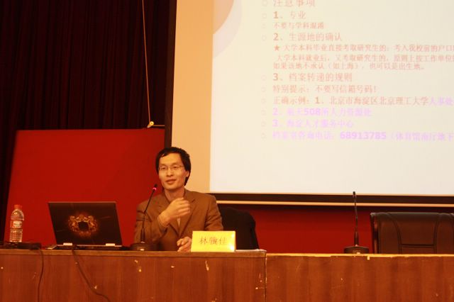 首先由学校就业办公室主任林骥佳老师讲解就业时有关户口、档案等问题。林骥佳老师首先举例强调了户口档案的重要性,并从三方协议的填写、外地生源在京、沪就业、关于派遣地的基础知识以及求职中应该注意的问题四个方面为同学普及了就业相关知识,并就同学易错点做了详细的讲解与提醒。同时告知同学在求职中注意保密自己的信息,谨防诈骗等情况的发生。希望此次会议能够给同学们提前敲响警钟,避免日后不知情给自己以及他人带来不必要的麻烦。
