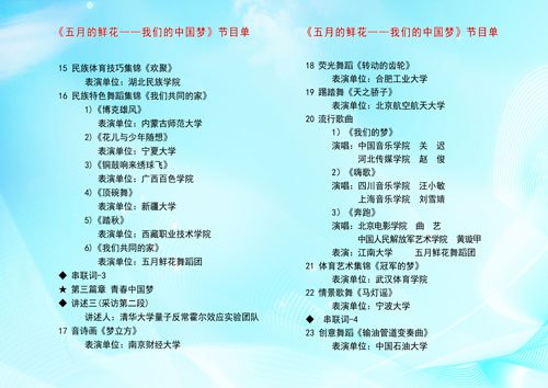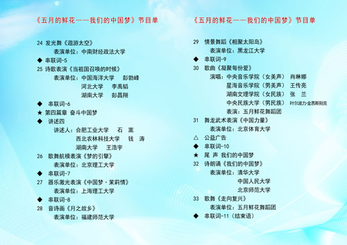 > 关于5月4日晚收看“五月的鲜花”——全国大学生校园文艺会演的通知
