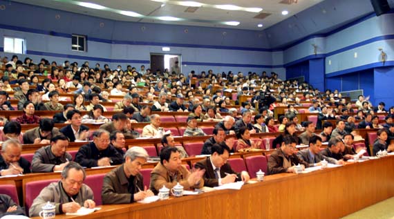 学校党政领导及二千余名党员代表参加了报告会