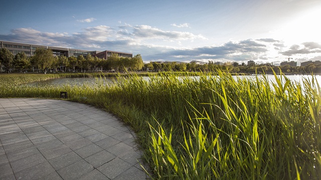 良乡校区建设不仅用基础设施建设为学生提供了较好的学习生活保障,还充分发挥新校区地缘优势,在校园环境建设中“善弄粉彩”,既有可圈可点的“神来之笔”,也着眼于大空间、大布局,疏密有致,通透流畅。良乡校区51.41%的高绿化率,使之成为当之无愧的园林校区。当下,良乡校区有乔木12,147株,灌木22,940株,攀缘植物432株,丛簇植物12,920株,色带有8,000多平米,这其中花卉面积1万多平米,野花5万多平米,野草10万多平米,总绿化面积达318,467平米。
