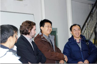 计算机学院副院长牛振东教授代表计算机学院致辞,鼓励实验室人员要积极促进国际先进技术与国内产业界尽早的融合,为学院教学和科研提供更多支持。