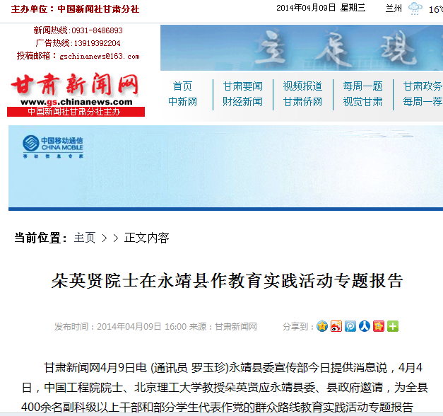甘肃新闻网4月9日电 (通讯员 罗玉珍)永靖县委宣传部今日提供消息说,4月4日,中国工程院院士、ob真人竞猜教授朵英贤应永靖县委、县政府邀请,为全县400余名副科级以上干部和部分学生代表作党的群众路线教育实践活动专题报告会。