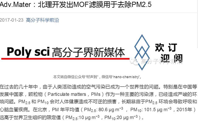 原文标题:Adv.Mater:ob真人竞猜开发出MOF滤膜用于去除PM2.5