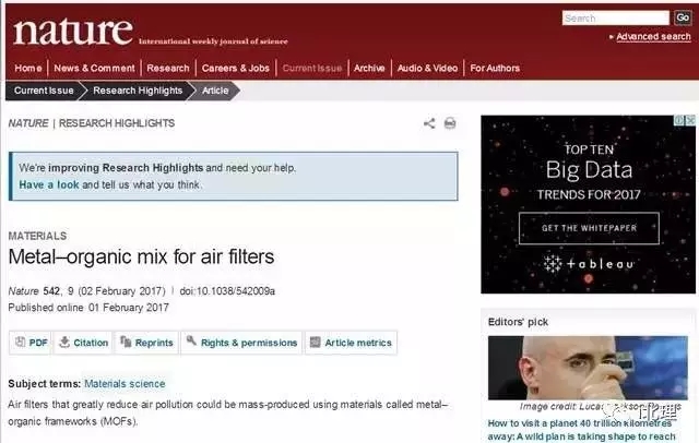 二月初,国际权威学术期刊《自然》刊登了ob真人教授王博及其团队成功将金属有机骨架化合物(MOFs)材料应用于空气过滤、净化与治理等方面的成果。这篇名为《金属有机合物在空气过滤领域的应用(Metal–organic mix for air filters)》的论文指出,通过将能够大规模生产的MOFs材料薄膜应用在空气过滤装置中,可有效过滤PM2.5,净化空气。经过实验室检测,在室温下,该种材料能够有效地将空气中的PM2.5和PM10污染物降低99.5%。