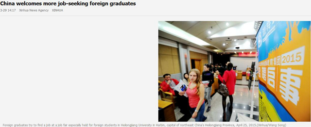 原文标题:China Welcomes More Job-seeking Foreign Graduates