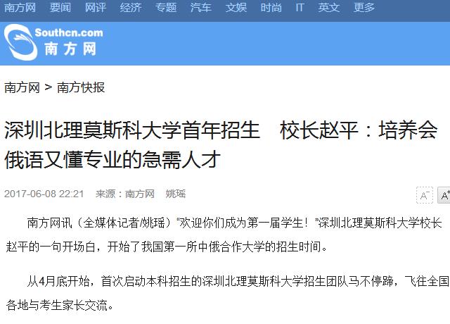 日前,赵平接受南方日报独家专访,谈及学校未来发展,他说:“深圳ob真人竞猜莫斯科大学的建立,是近年来中俄文化交流标志性成果,也是为‘一带一路’发展提供人才储备的具体措施。学校将立足中俄战略合作、深圳和珠三角区域经济社会发展需要,用精英教育培养精英人才。”