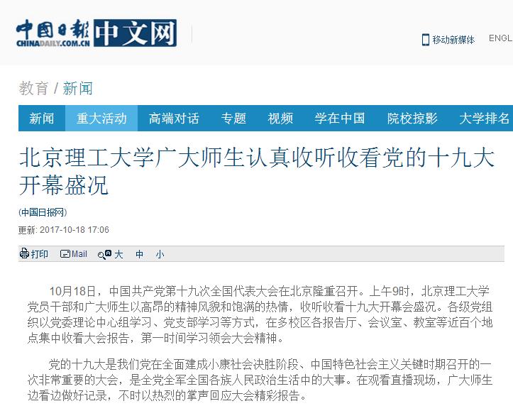 发布日期:2017-10-18 供稿:中国日报 编辑:薛乔丹 审核:王征 阅读次数: