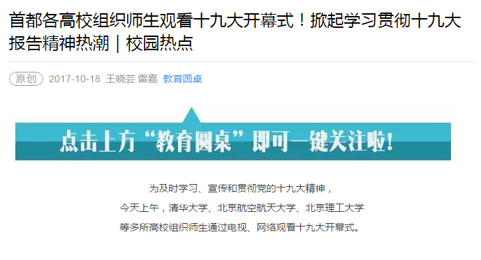 原文标题:首都各高校组织师生观看十九大开幕式!掀起学习贯彻十九大报告精神热潮