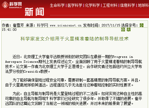 原文标题:科学家发文介绍用于火星精准着陆的制导导航技术