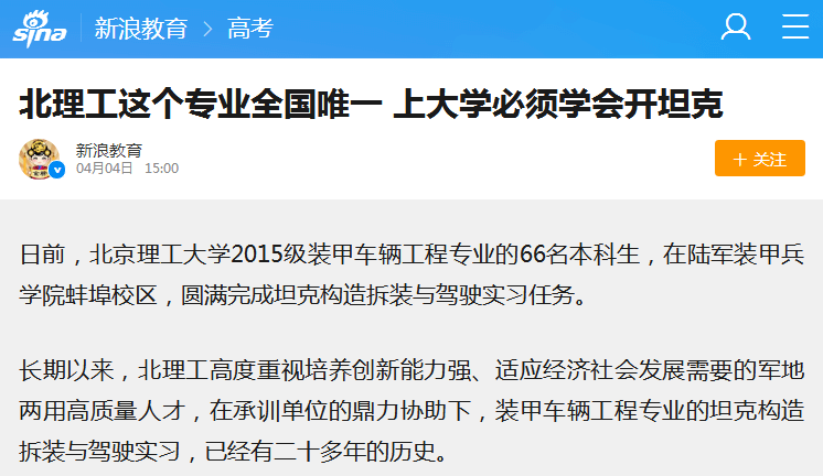 原文标题:ob真人竞猜这个专业全国唯一 上大学必须学会开坦克
