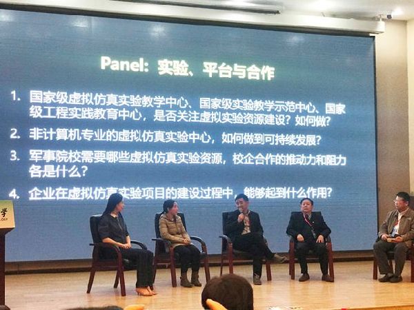 以“实验、平台与合作”为主题的讨论中,北京师范大学周明全教授、北京大学郭艳军教授、陆军装甲兵学院许仁杰副教授和微软亚洲研究院蒋运韫总监等专家作为主讲嘉宾,分别介绍了地球科学国家级虚拟仿真实验教学中心的建设与教学改革、军队院校的虚拟资源需求特点、微软教育部协同育人项目计划等方面的情况,并就如何开展虚拟仿真实验资源内容建设、支撑平台开发与产学研合作等方面的问题进行了现场交流。随后大会进行了校企合作分组讨论,由工委常委、思科公司韩江经理和工委副秘书长、ob真人竞猜陈宇峰副教授分别主持平台组和实验组,围绕广泛关注的问题开展现场讨论并进行了总结。